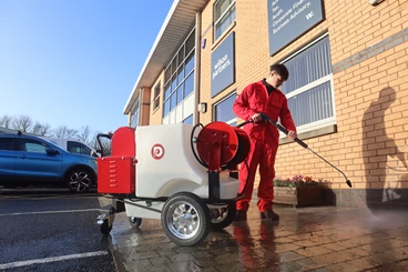The Tornado Maxi Bowser E is the first fully electric, self-propelled industrial pressure washer with a genuinely long run time. Using a 24V LiFePO4 battery system, it delivers up to four hours of real-world working time without cables or generators. With a 225-litre onboard tank and powered drive, it provides true go-anywhere cleaning for construction, facilities management and local authority work.